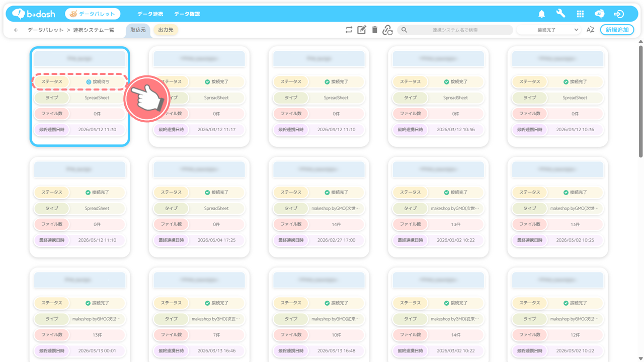 ステータスが「接続完了」になった連携設定をクリックします