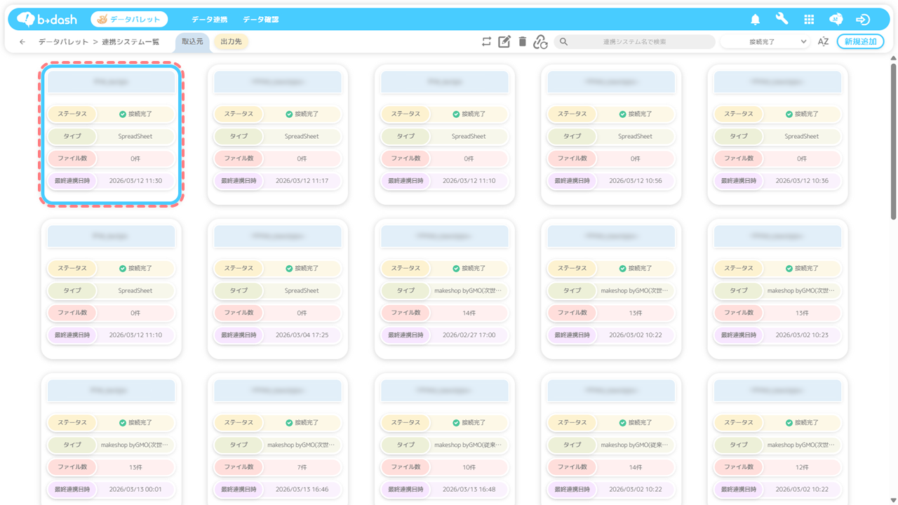 連携されたデータをb→dashに取り込み設定をすれば、ファイル内の全レコードが読み込まれるようになりますのでご安心ください。