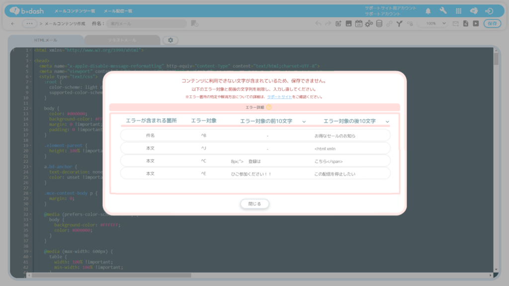 (貴社のb→dashで利用しているメールサーバーが「Mail Publisher」の場合、テキストに絵文字を使用することができます。)